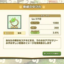 けものフレンズ3の「新緑のゆびわ」のLv.10(最大レベル)時のステータスを掲載しています。けもフレ3で「新緑のゆびわ」を調べる際は参考にしてください。