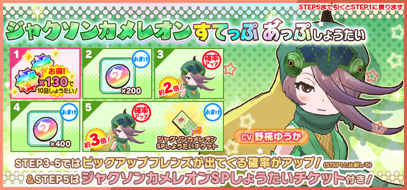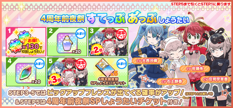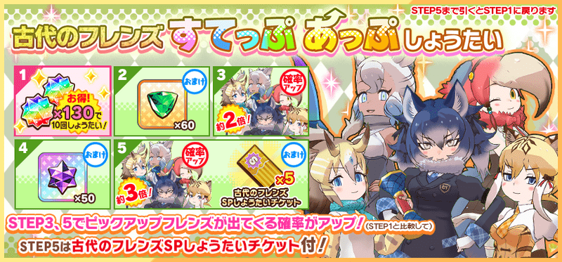 | STEP1~4 | 通常 | ☆3確定時 | フレンズ限定時 | |