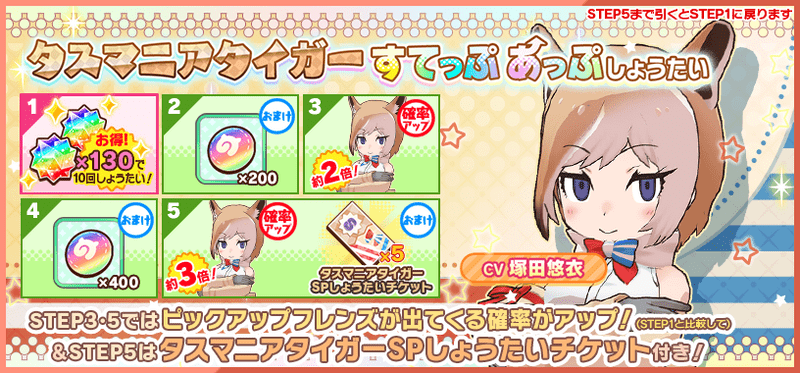 | STEP5 | 通常 | ☆3確定時 | フレンズ限定時 | |