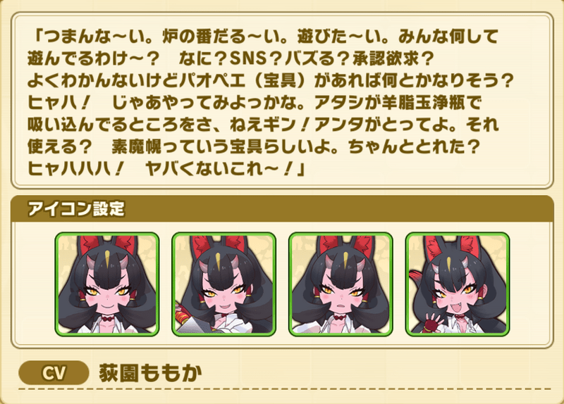 状態異常を中心とした追加効果、リラックス属性(青)へのバフやMP加速など、ギンカクをかなり意識した性能になっています。ヌエなどの他の状態異常付与型フレンズともうまく組めると思われます。また、基本の立ち回りはヘイトを集め、たいりょくを低%に維持することが中心となり、被ダメージバフも豊富です。ただ、自らを回復する手段を一切持ち合わせていないため、場合によっては回復役を同時編成する必要があるかも知れません。 - キセキとくせい