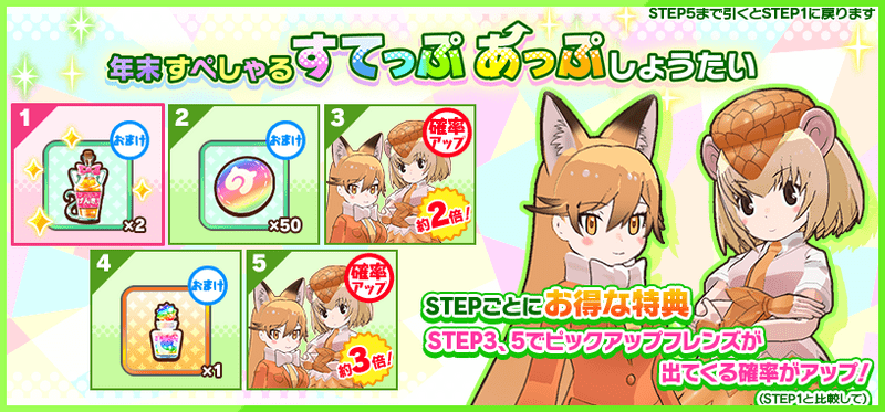 | STEP1・2・4 | 通常 | ☆3確定時 | フレンズ限定時 | |