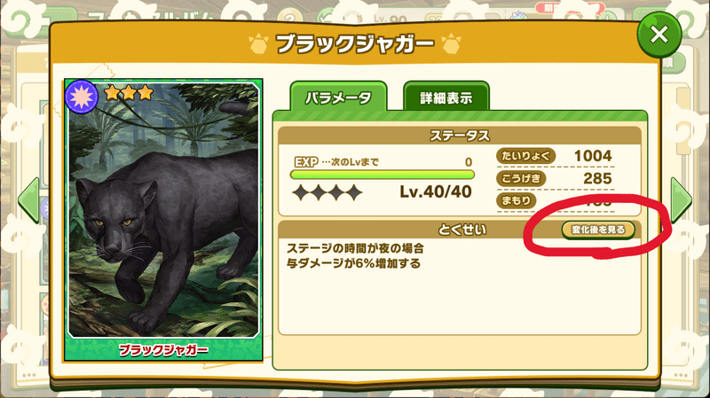 ↑「変化後を見る」ボタンを押すことで変化後のとくせいを見ることができます。