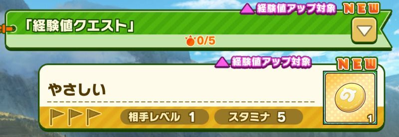 | 経験値クエストのやさしいをクリア | スタミナ20回復ドリンク×1 |