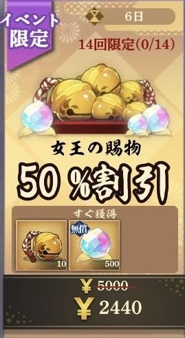 イベント期間限定で販売されるお得なパックです。イベントを効率よく進めたい方やたくさん神降しがしたい方は購入の検討をおすすめします。