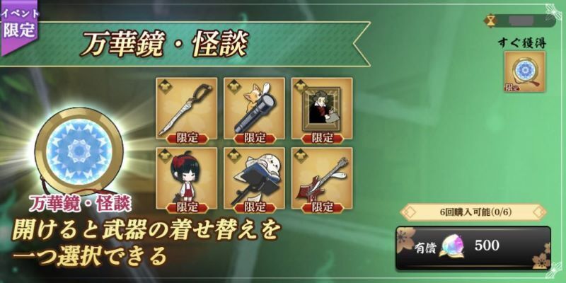 イベント限定の武器着せ替え「怪談」シリーズが登場します。