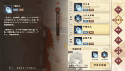 | 出陣時、自身の攻撃力+270。 蓮台野で更に攻撃力+90。 | |