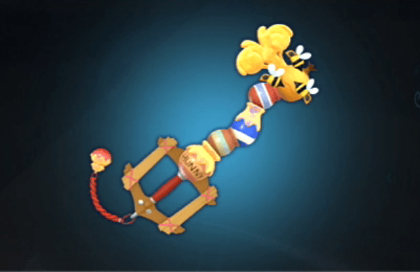 攻撃力と魔法力のバランスが取れたキーブレード。「ハニーブラスター」と「スイートランチャー」に変形することが可能。