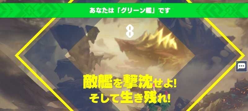 バトル開始し、フィールドの四隅に各チームの浮島艦が配置される。