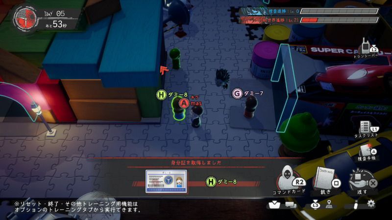 偽の監視タスク | 制限時間40秒 プレイヤーを選んで3人のプレイヤーに監視させる 監視が終わらなければ新世界進捗レベル10上昇する |