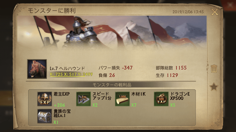 モンスターは、王国マップ内に大量に存在します。部隊を派遣してモンスターを討伐することで戦利品を獲得することができます。