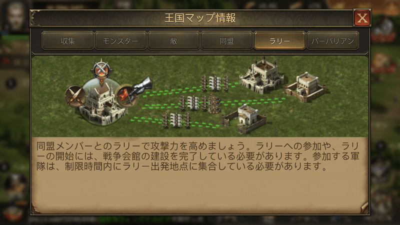 同盟内でラリーの参加を募り一斉に攻撃を仕掛けに行く形になります。