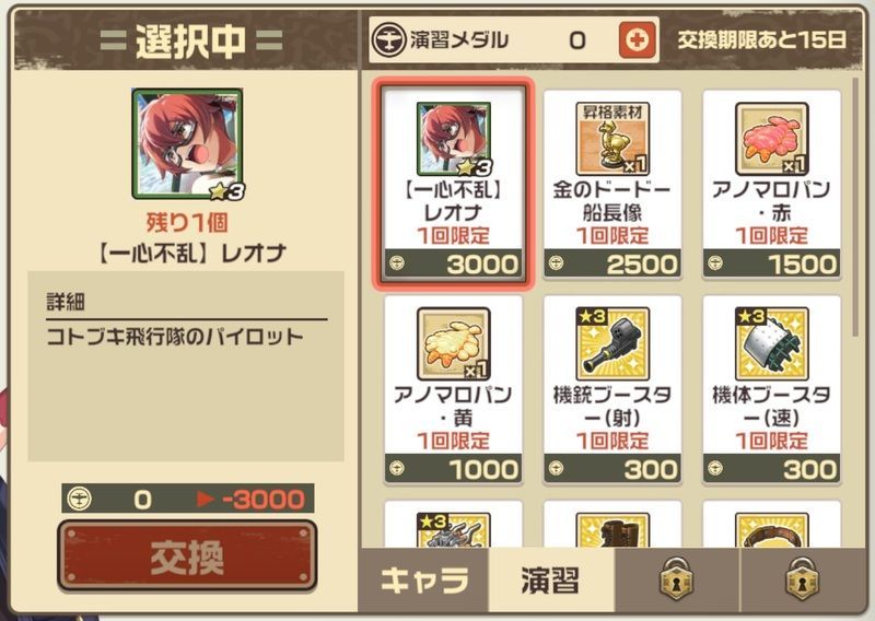 ★3レオナ(一心不乱)は演習メダルで交換可能