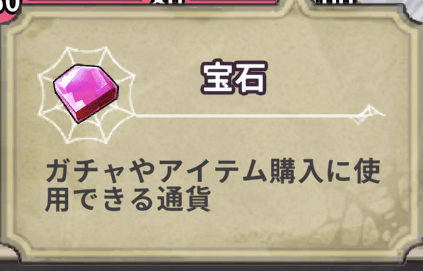 | ダイヤ | ゲーム内限定の通貨・ダイヤは、有料のものを、現金の代わりに同額のダイヤで購入できる。・ダイヤを購入したほうが、直接現金での支払いよりも、宝石を入手できる分お得 | <使用>有料コンテンツ購入時<入手>商店>ダイヤ商店 | |