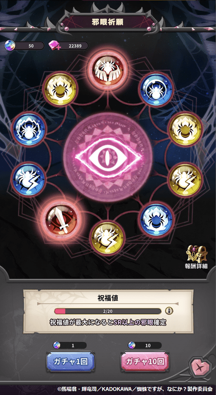 - 邪眼祈願で、邪眼召喚石を使って、邪眼(HR以上、主にSR)を入手