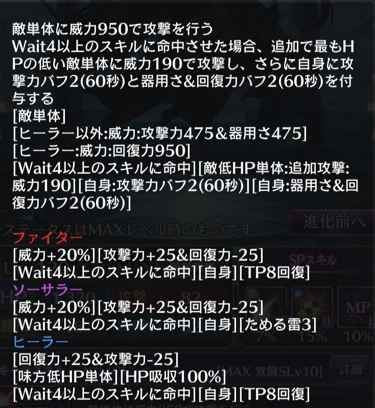 | wait | チャージ | 消費MP | wait | チャージ | 消費MP | wait | チャージ | 消費MP | ||||||||