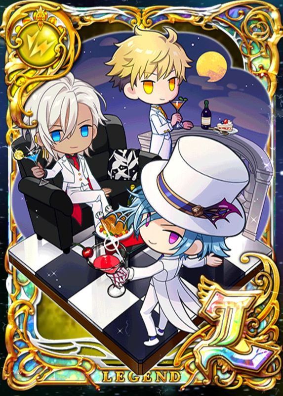 | 入手方法 | 黒ウィズダンジョンHEATの10万ポイント獲得のミッション報酬 男たちの夜会場【L】を、イベントポイント1万で交換できる下記カードで進化 紅に酔う白き闇 ノクス【L】 月夜の太陽 アポロニオ【L】 ブルーでウェットな夜 アシュタル【L】 |
