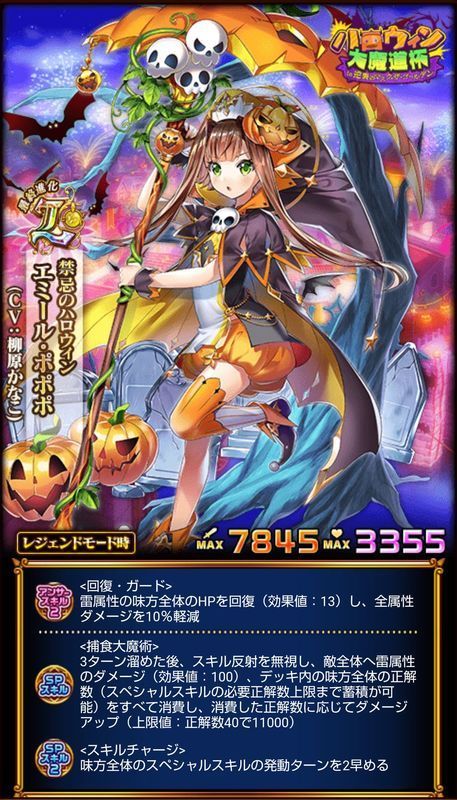 チーム内デイリーランキング7000位以内、および累計40万ポイントで禁忌のハロウィン エミール・ポポポ【L】を入手。