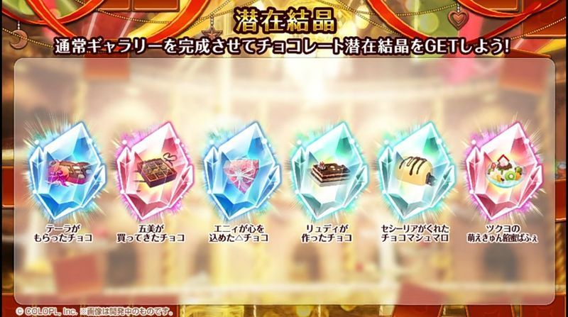 新要素としてシークレットギャラリーが登場。お題に沿ったデッキで挑むとピースが手に入り、全部集めると描き下ろしイラストの限定仕様潜在結晶(全3種)になります。
