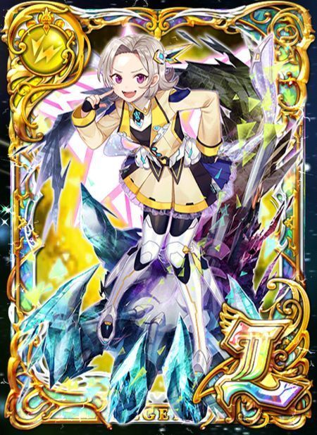 | 潜在能力 | 1.パネルブーストⅡ・雷:雷属性パネルが出やすくなる(効果値:2) 2.雷属性攻撃力アップⅤ:雷属性の味方の攻撃力が500アップする 3.雷属性HPアップⅤ:雷属性の味方のHPを500アップする 4.パネルブーストⅡ・雷:雷属性パネルが出やすくなる(効果値:2) 5.ファストスキルⅡ:初回のスペシャルスキル発動を2ターン短縮 6.雷属性ダメージ軽減Ⅰ:雷属性のダメージを10%軽減する 7.雷属性攻撃力アップⅤ:雷属性の味方の攻撃力が500アップする 8.雷属性HPアップⅤ:雷属性の味方のHPを500アップする 9.チェインガードⅠ:1クエストに1回のみ、チェインを保護 10.敵に与えるダメージを1.1倍にし、HPを500下げる |