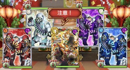 中はデッキに水属性がいると怒り、先制属性特効(水に5000、水以外に5万)&水属性以外吸収(全体500%/99T)