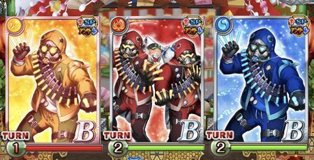 | スキル | 属性反転(99T) 属性特効 属性吸収 | 恐怖(複属性が対象) 属性特効 属性吸収 | SPスキル封印(99T) SS耐性99%&AS弱体化+10%/全体20T 属性特効 属性吸収 |