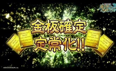 2015年のゴールデンウィークから始まった期間限定の金板(A以上)確定が、今後はいつでも実装されるように。
