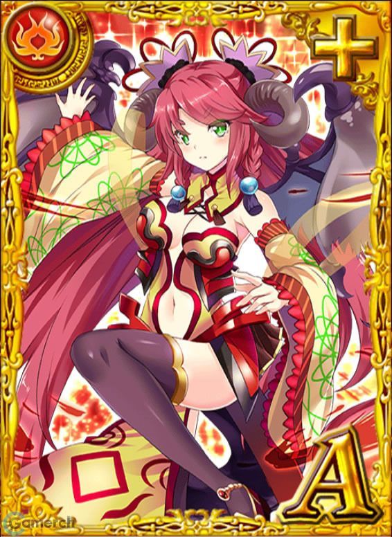 | 潜在能力 | 1.攻撃力アップⅠ:攻撃力が100アップ 2.ファストスキルⅠ:SSの発動を初回のみ1ターン短縮 3.火属性攻撃力アップⅠ:火属性の味方の攻撃力が100アップ(自分にも効果有) 4.ファストスキルⅠ:SSの発動を初回のみ1ターン短縮 5.HPアップⅡ:HPが200アップ |