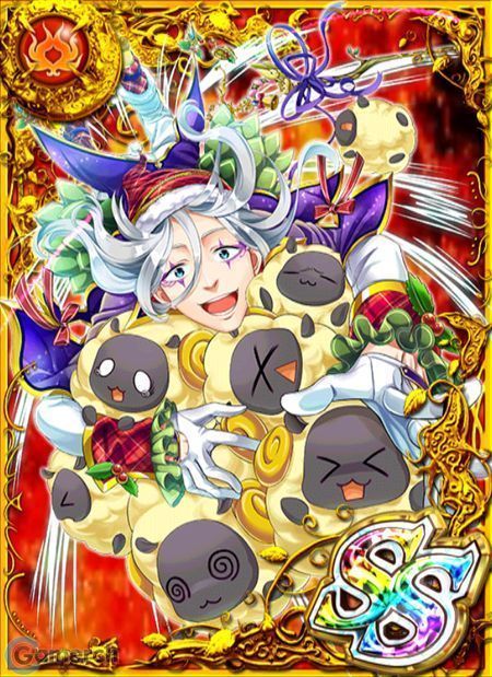 | 真・セイクリッドお父さんパンチ 4ターンの間、火単色精霊が多いほど、火単色精霊のダメージを強化し、さらに永続ターン、攻撃力、HPのステータスをアップ、リーダー時さらにステータスアップ (強化上限値:+100% / ステアップ上限値:+500/+500 リーダー時のみ:+1000/+1000) 必要正解数:5 |