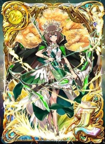 | 浄化と祝福の矢 攻撃強化:チェイン数に応じて雷属性の味方の攻撃力をアップ (基本値:+160%、7ch以上:+220%) ガード:味方全体の全属性ダメージを軽減、デッキ内の順属性の精霊が多いほど、さらに効果値アップ(上限:5段階) (基本値:10% / 純属性1枚につき+1%) |