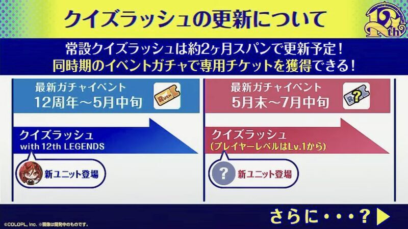 新コンテンツとして、クイズラッシュが常設コンテンツ化します。