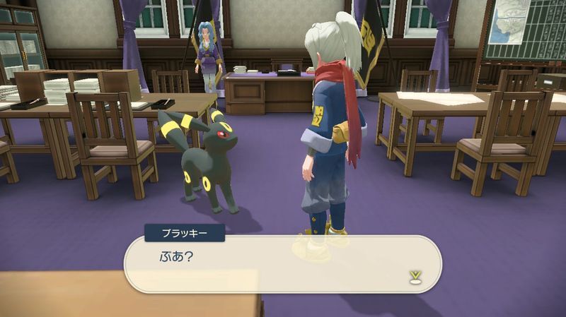 イーブイはギンガ団本部2階の部屋におり、ブラッキーに進化しています。ブウラッキーに話しかけるとイベントが始まりますので、見逃さないようにしましょう。