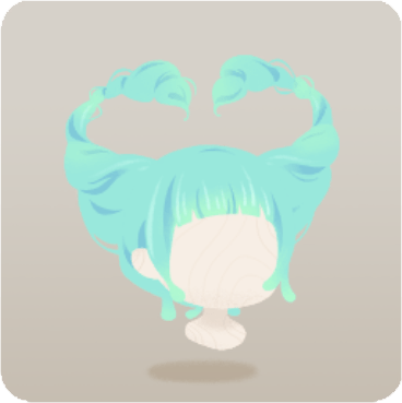 | ハートっぽくも見える髪型。ツルのようにくるくると上に伸びている。 | |