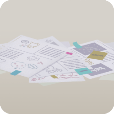 | 堆放在一起的Livly研究資料。附有許多小巧的便條紙與標籤。 | |