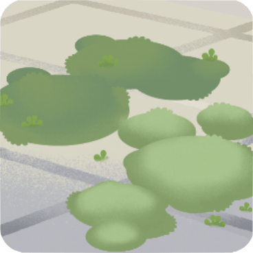 ![]() | 島左前裝飾 堆疊的磚頭與盆栽 |
