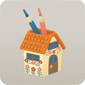 ![]()  | 島左前裝飾 花朵圖案小屋筆筒  |