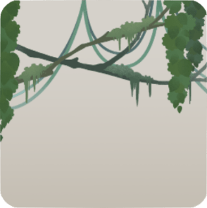 | 藤蔓與斷裂樹枝等植物在神殿上方互相纏繞的景象。 | |