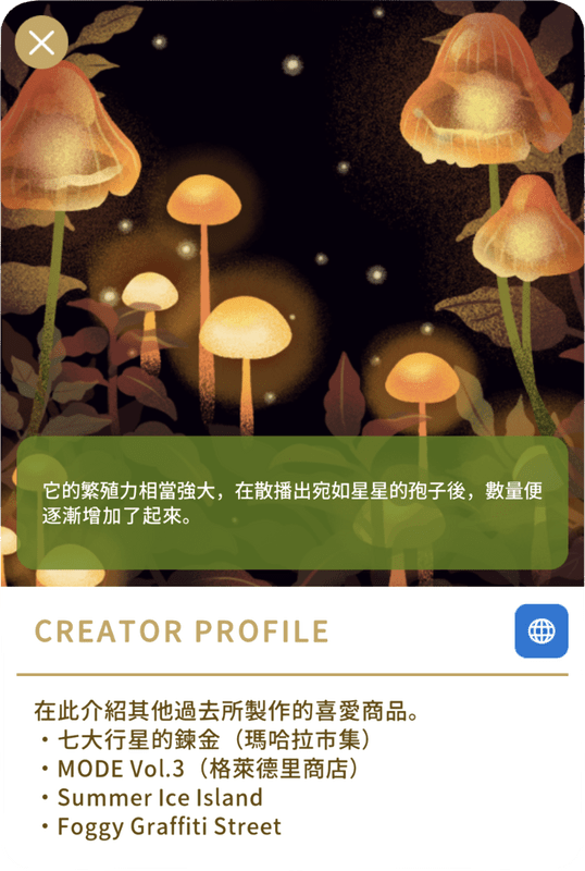![]() | 背景 朝夜空延伸的發光香菇 |
