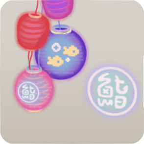 | 發出霓虹色光芒的燈籠型顯示器之樹。今晚也會開店的信號。 | |