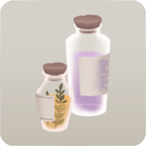 ![]() | 島左後裝飾 裝有研究中靈藥的小瓶 |
