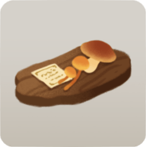 ![]() | 島右前裝飾 放上香菇與筆記的木板 |