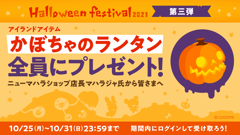 マハラジャ店長からハロウィンの特別な贈り物として「かぼちゃのランタン」がプレゼントされます。