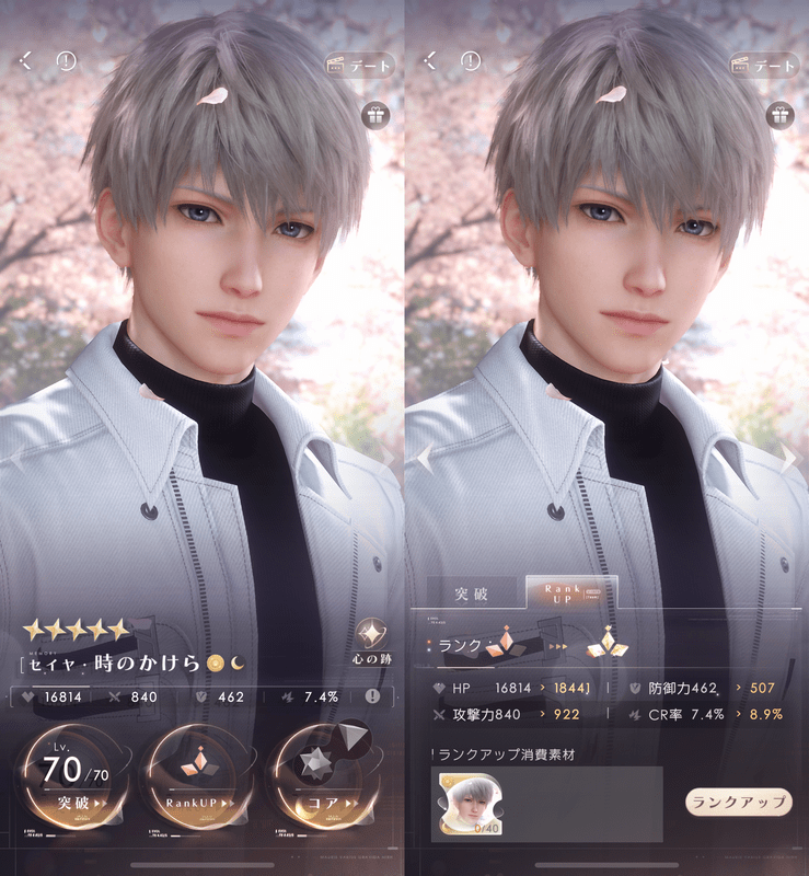 コアを外した状態の思念のスクショ+ランクアップ画面