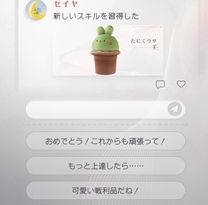 現在のSNS・メッセージの情報はこちらSNSの選択肢毎の返信内容も募集しています。表示される3択・選んだ選択肢・彼からの返信の3点が欲しいです。
