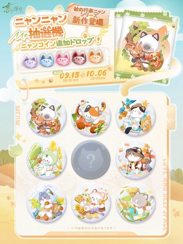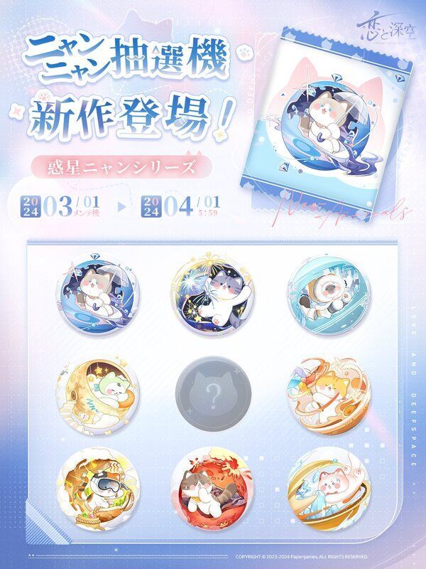 恋と深空Love and Deepspaceのデート「ニャンニャン抽選機」で入手できるニャンバッジの一覧です。恋と深空の攻略にお役立てください。