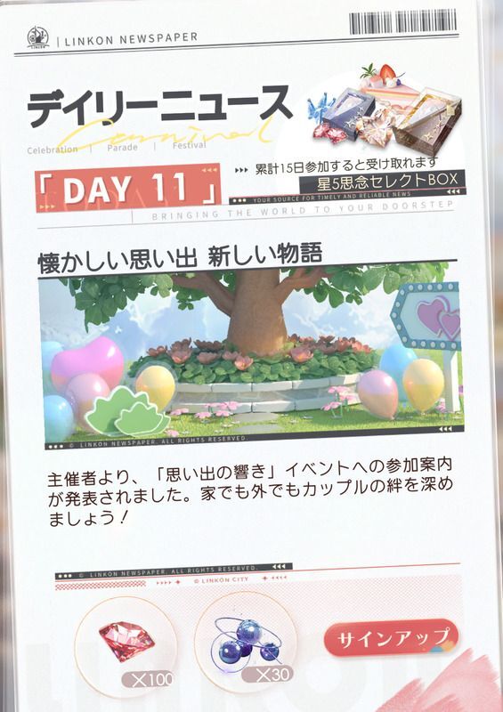| 9日目 | ダイヤ×100 ハッピーチョコ×1000 |