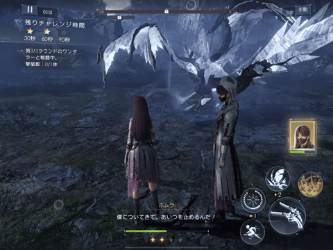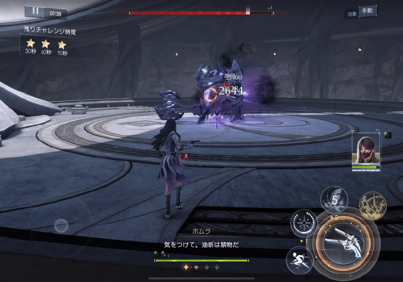 その後すぐに協力スキルを発動、ボスの最初の攻撃に合わせて回避ボタンを連打します。