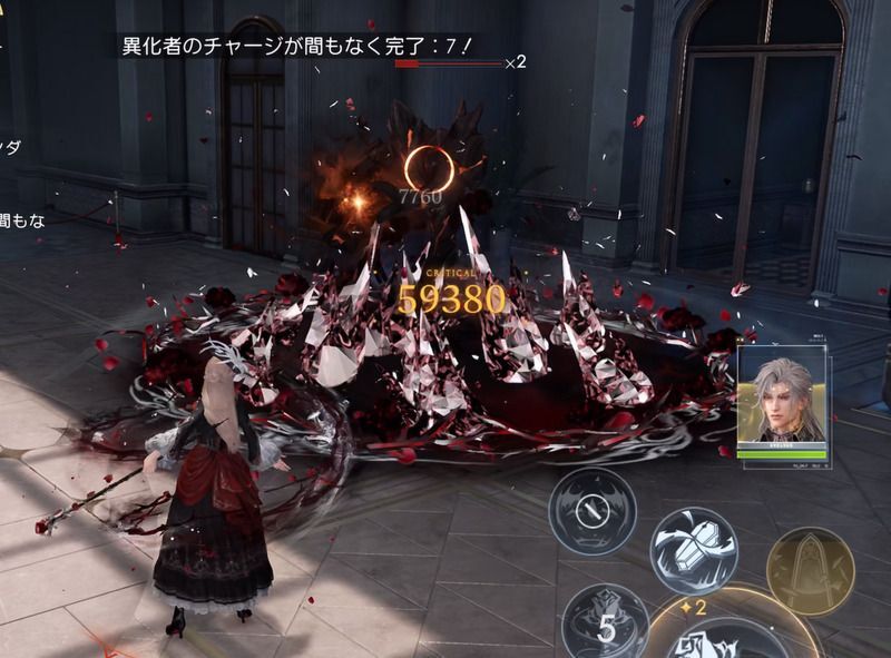 血薔薇を咲かせるには前述した通り血薔薇の雨(アクティブスキル)を発動させる必要があります。通常攻撃/重撃でも活性化できますがかなり時間がかかり、薔薇はそこまで早く咲きません。普通なら敵が弱体状態の間に1輪咲かせるのがやっとで、深紅セット1凸以上なら2輪です。
