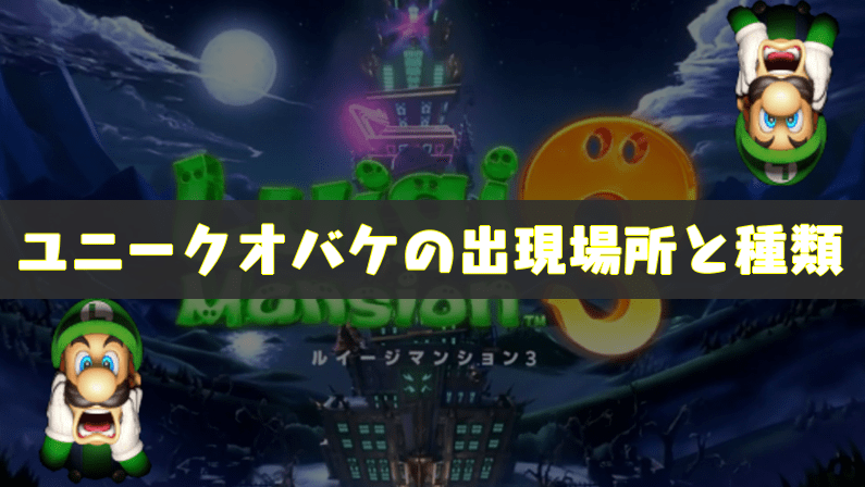 ルイージマンション3に登場するユニークオバケの出現方法と種類ついて紹介します。全部で9種類いるのでコンプリートの参考にしてください。