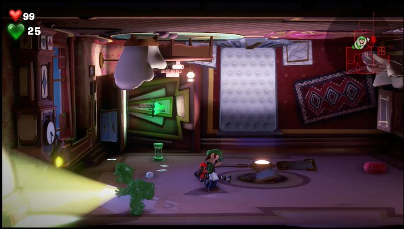 ベッドの前にルイージを待機させて、グーイージで時計にストロボを当てよう。そうすると制限時間内にダークライトを当てられる。