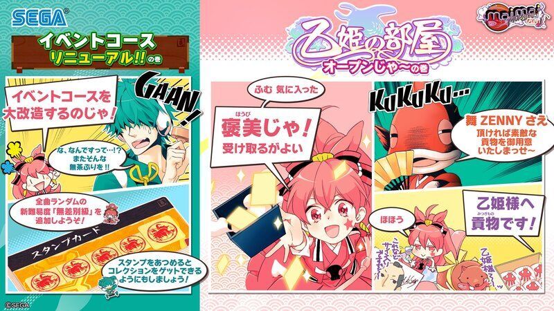 - 「舞ZENNY」を消費してプレゼントをあげることが出来る。一回のプレイに付き時間は5秒。沢山連打するなり、回転でいろんなものをあげたりなど、乙姫と仲良くしよう。